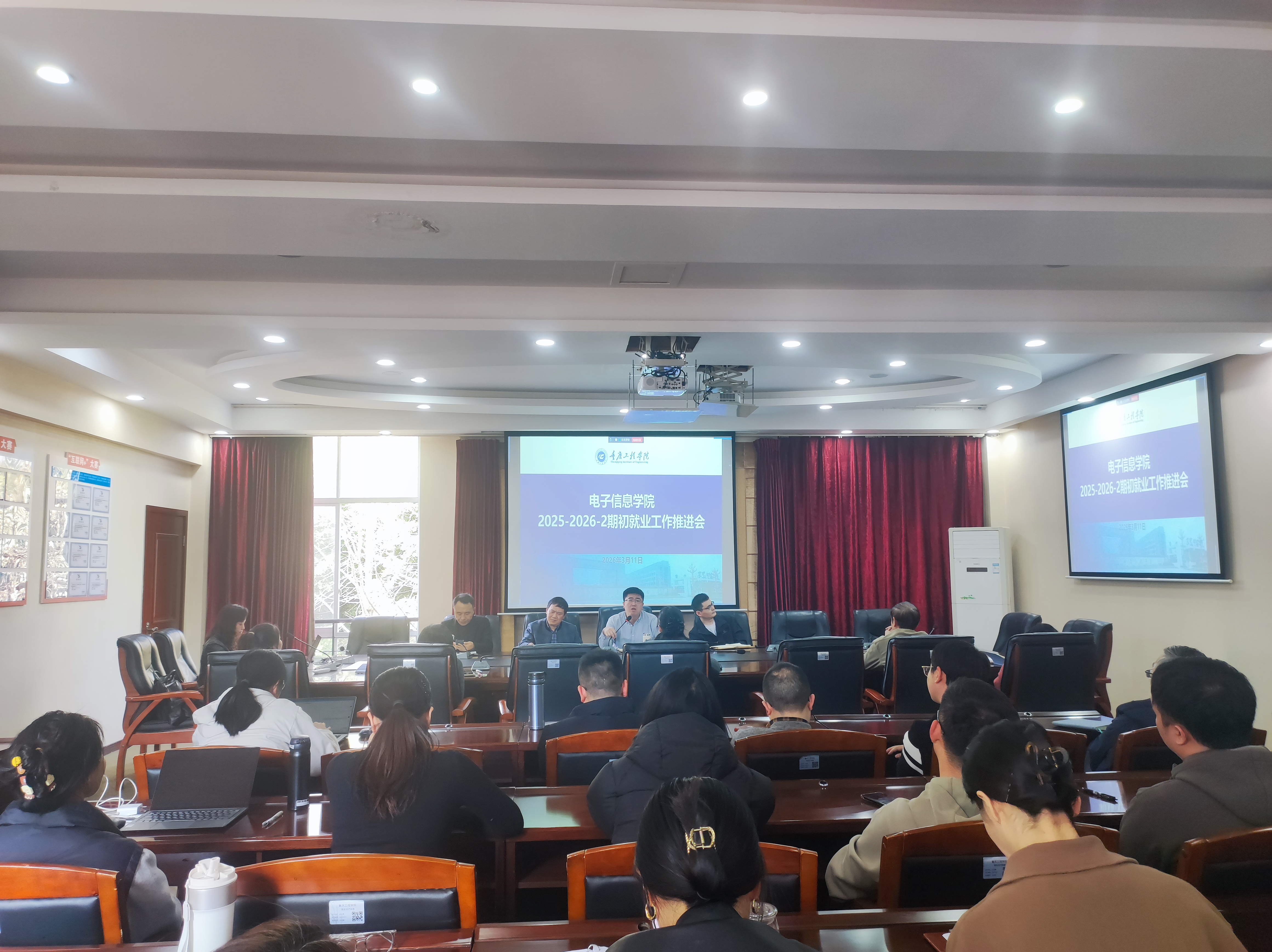 3 月 11 日下午,电子信息学院在 212 会议室召开 2025-2026-2 学期第二次全院大会,双桥校区教师线上同步参会。会议围绕政治理论学习、教学创新培训、就业工作推进、班导师工作部署四大板块展开,全院教职工共谋学期新发展。