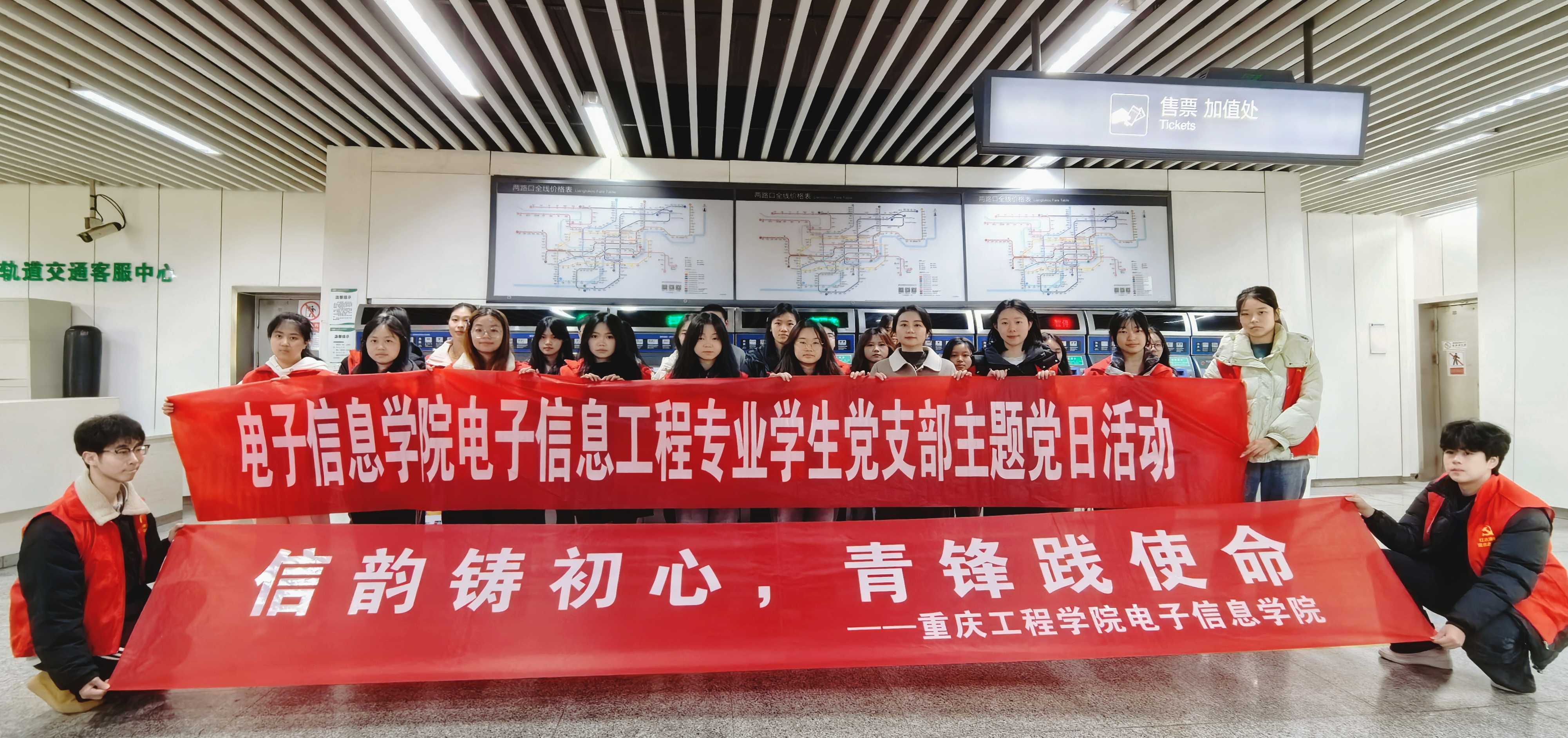 春风送暖,志愿同行。3月20日,电子信息学院学生党支部走进重庆市渝中区两路口地铁站,开展“信韵铸初心,青锋践使命”主题党日活动,以实际行动书写青春担当,推动党建与志愿服务深度融合。