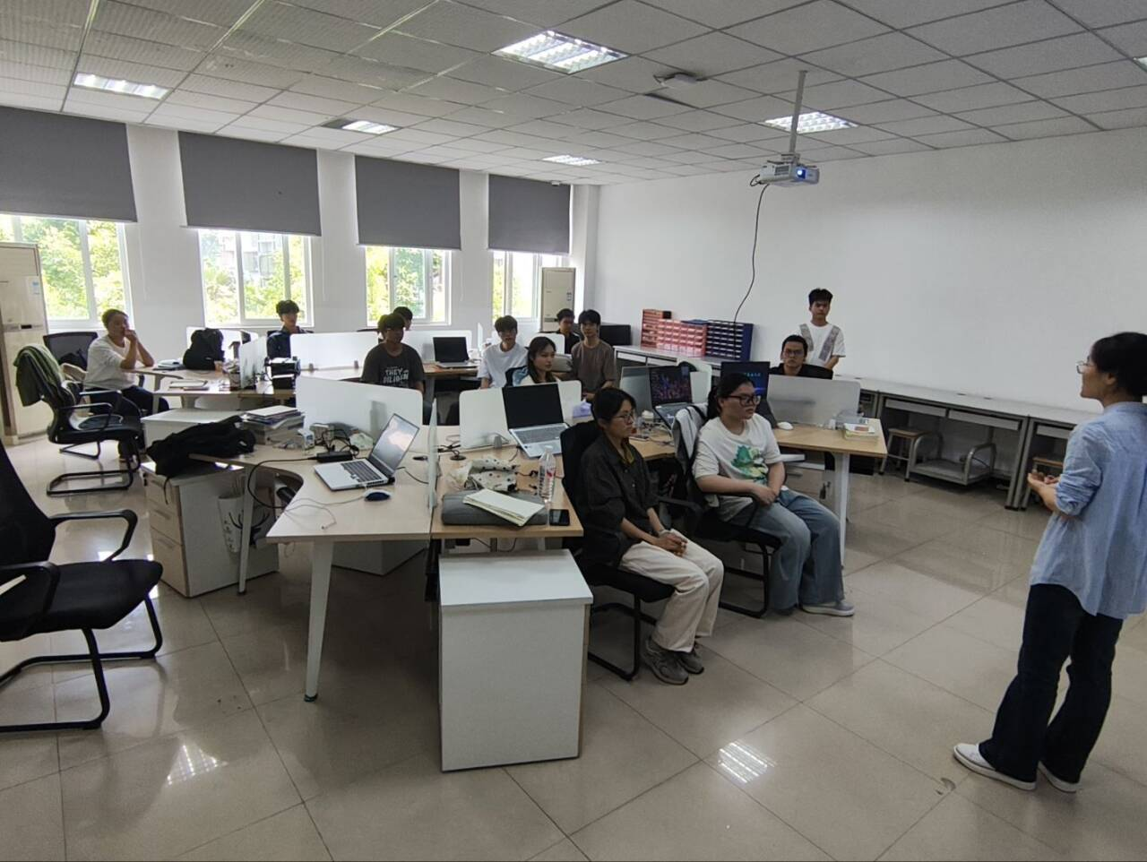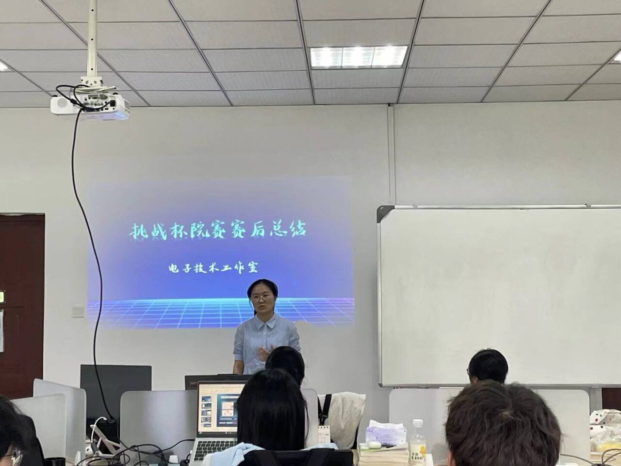 会议第一项议题为“挑战杯”赛后总结工作。院赛结束后,工作室参赛团队已完成初步梳理,全体参赛同学依次进行个人总结,结合自身在赛事中的参赛表现、任务分工、问题短板及提升空间,进行全面、深入的总结汇报。同学们重点梳理了赛事筹备、现场答辩、团队协作等环节中存在的不足,同时分享了赛事中的经验与感悟。