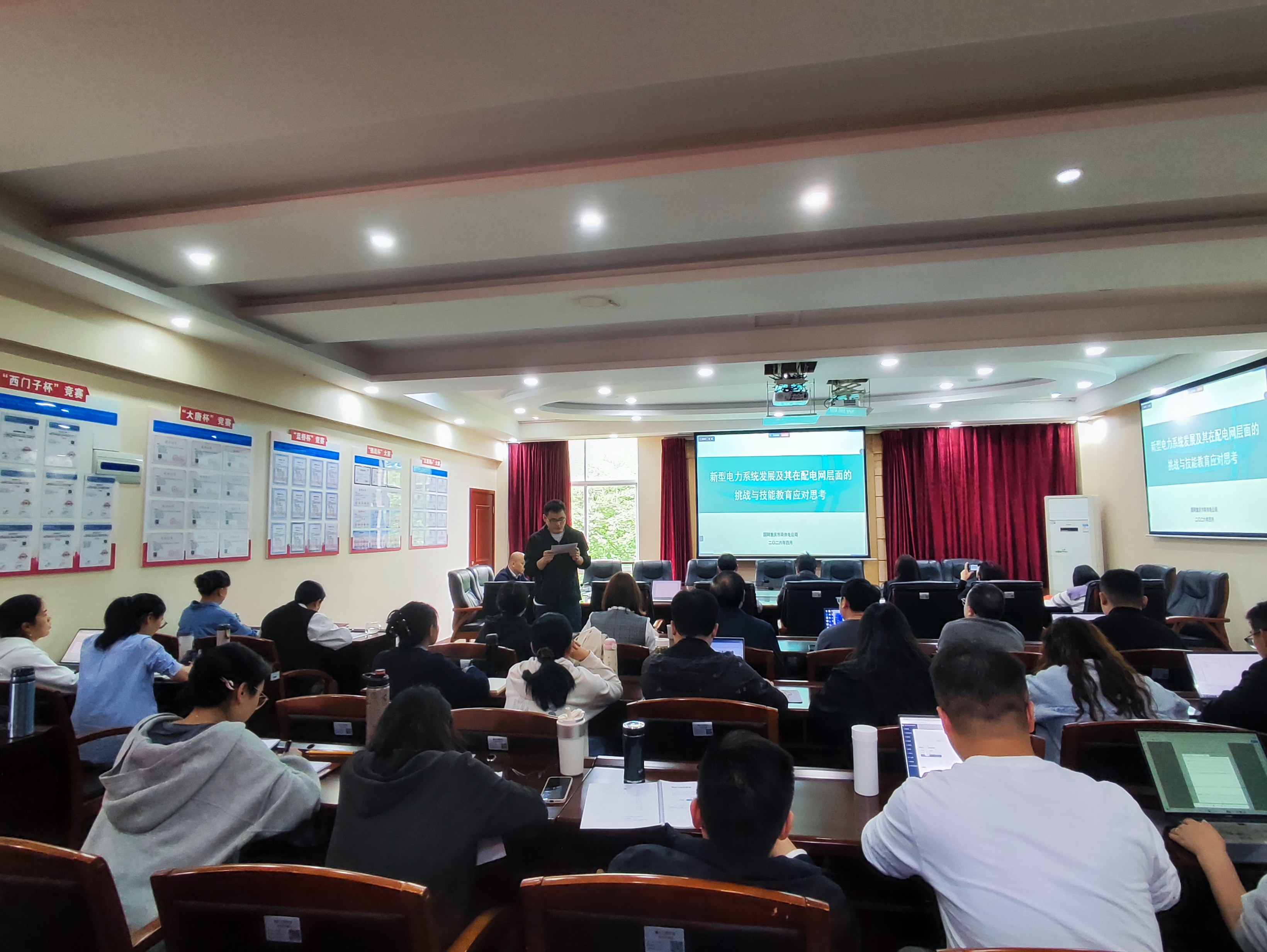 为提升学院教师对新型电力系统的认知水平,把握行业发展趋势,并探索新型电力系统人才发展路径,学院于2026年4月14日下午,在212会议室召开了新型电力系统发展专题培训会。本次培训特别邀请了王士彬博士主讲,由学院副院长张仁永主持,电子信息学院全体教师参加。