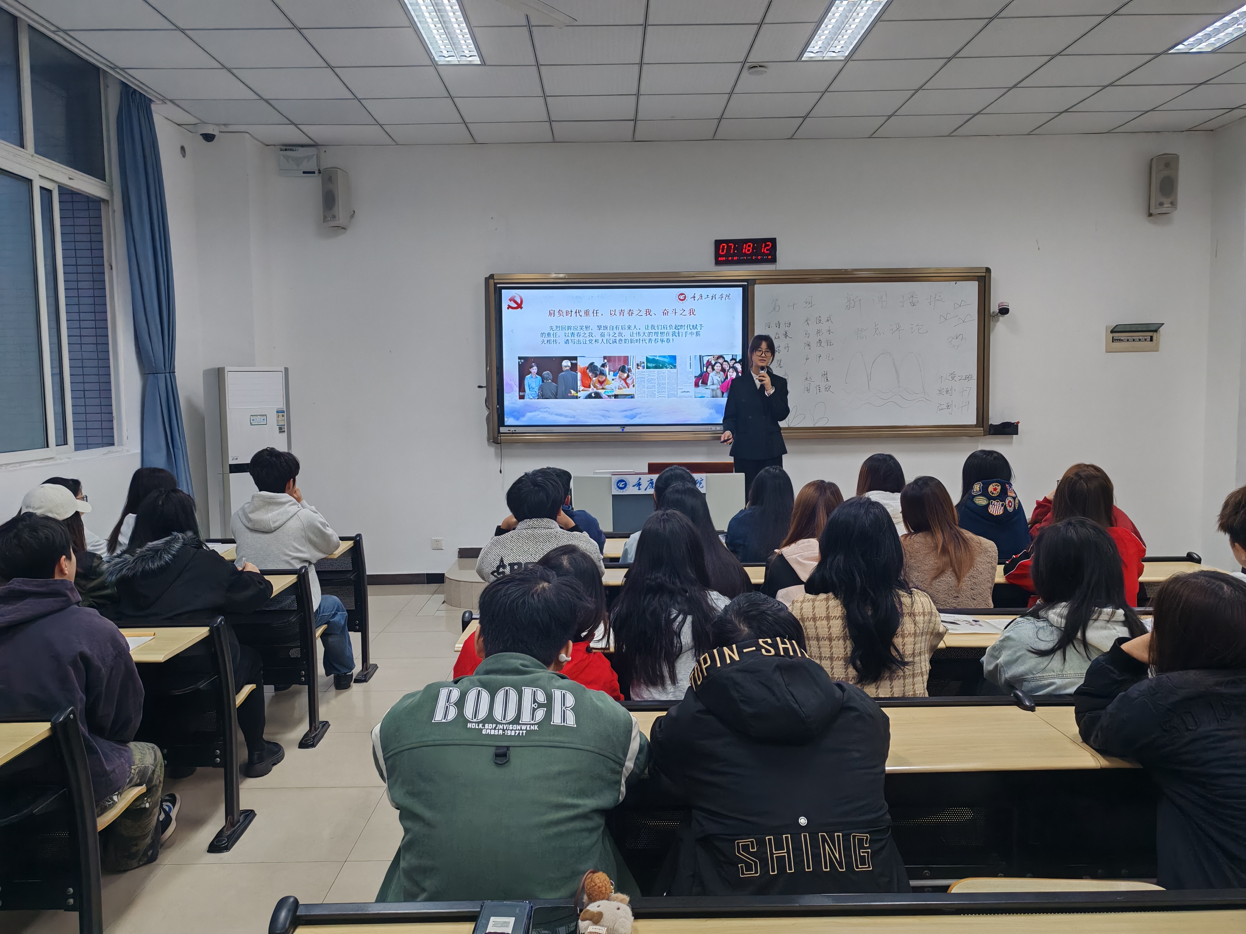 本网讯(图/寇越 文/邓涵尹 学生党教中心)岁岁重阳秋风劲,久久情长初心明。10月30日上午,数字经济与管理学院党总支于第六教学楼组织“大学生微党课”进班级活动,本次活动由任冠霖,罗婧芯等八位学生党员以“重阳登高怀先烈,敬老爱党两情深”为主题进行宣讲。
