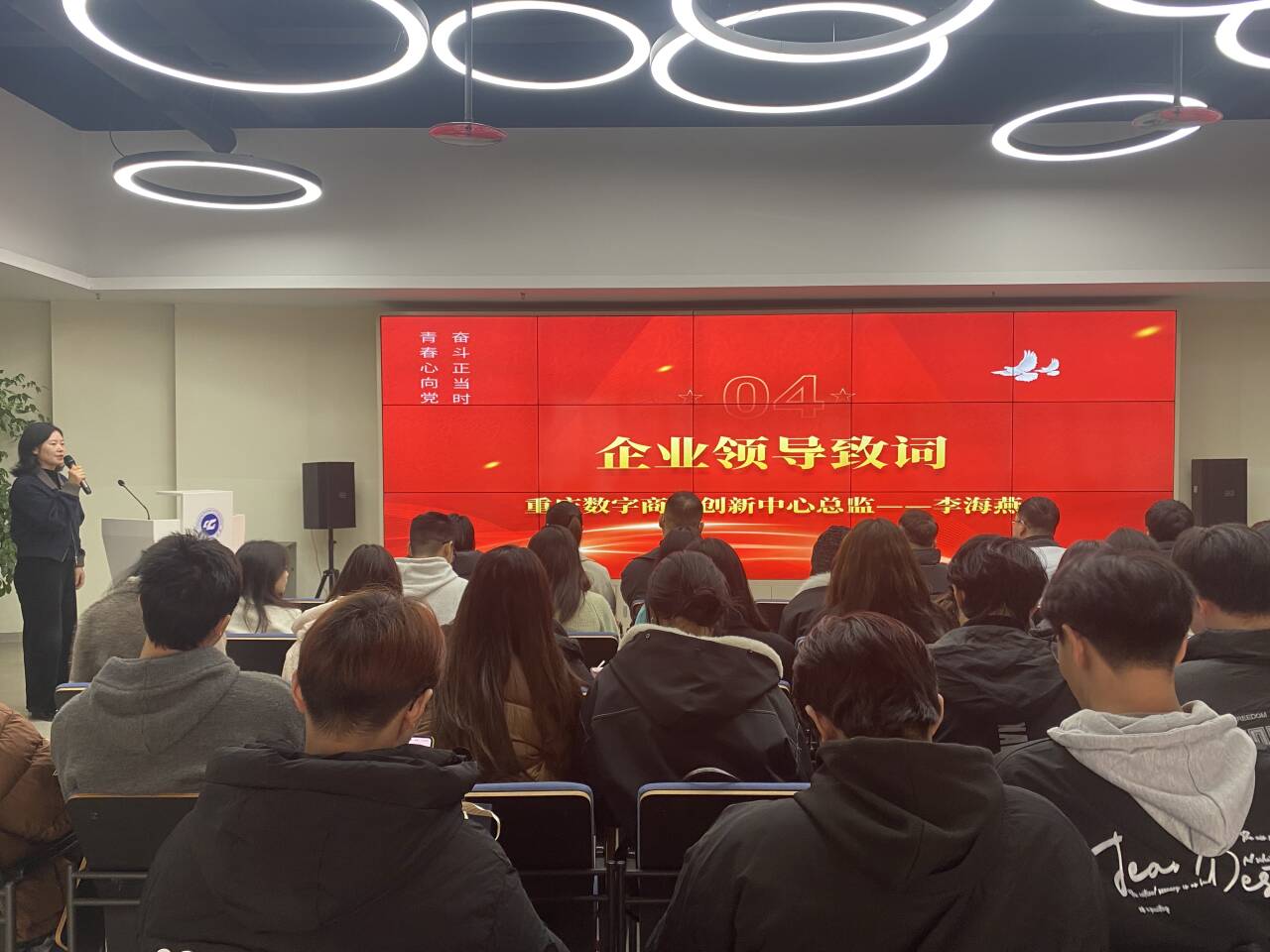 本网讯(文/图 数字经济与管理学院 杨仕梅)12月19日下午,数字经济与管理学院第三届数字营销精英班年终总结暨表彰大会在重工创谷A101路演大厅召开,本次大会由视频号数字营销项目优秀学员杨思源主持,重庆数字商务创新中心总监李海燕,重庆商社汽贸别克数字营销项目负责人王诚、别克新媒体运营负责人骆心怡,以纯重庆办事处推广负责人武杰、以纯校企合作负责人李艳,数字经济与管理学院院长简玉刚、副院长李玲等出席,全程见证学员成长与成果。