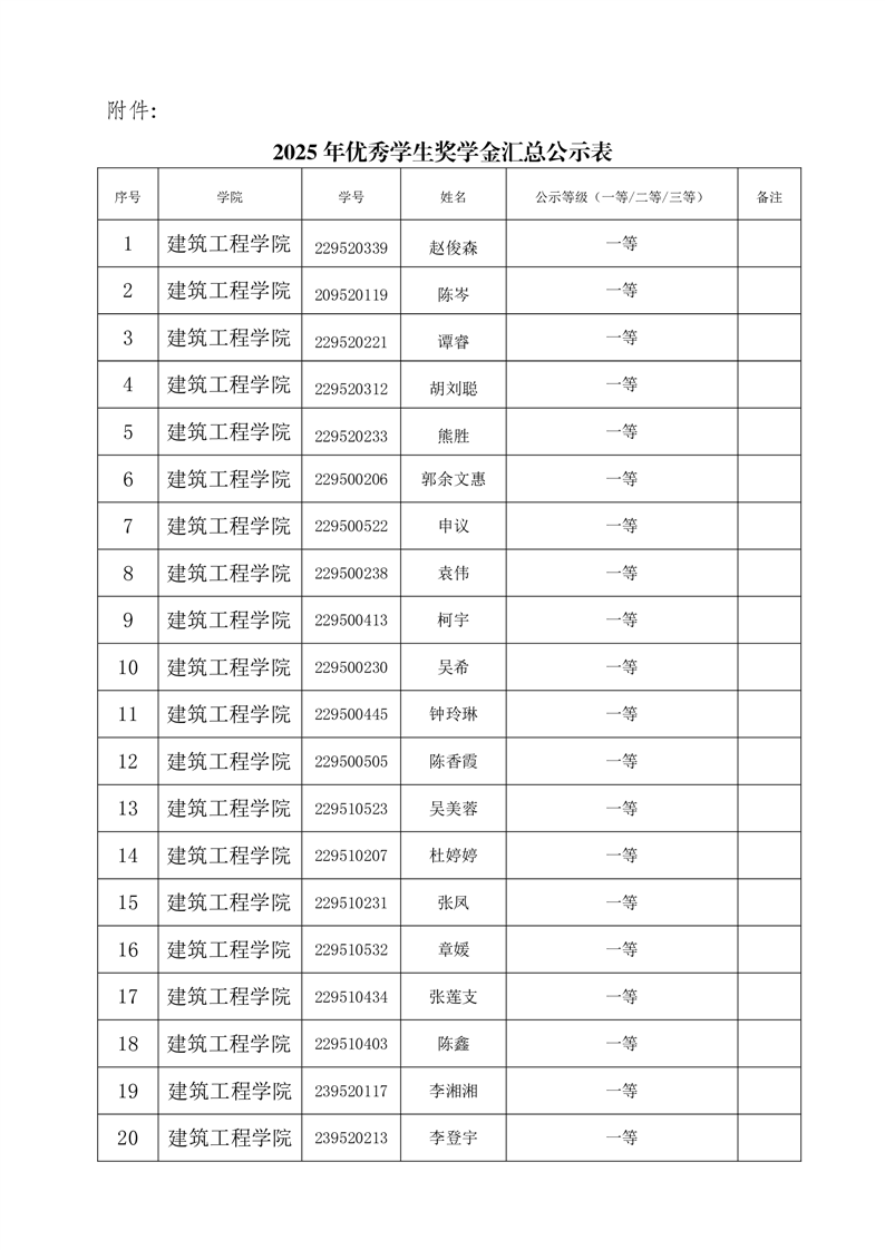 2025年优秀学生奖学金公示