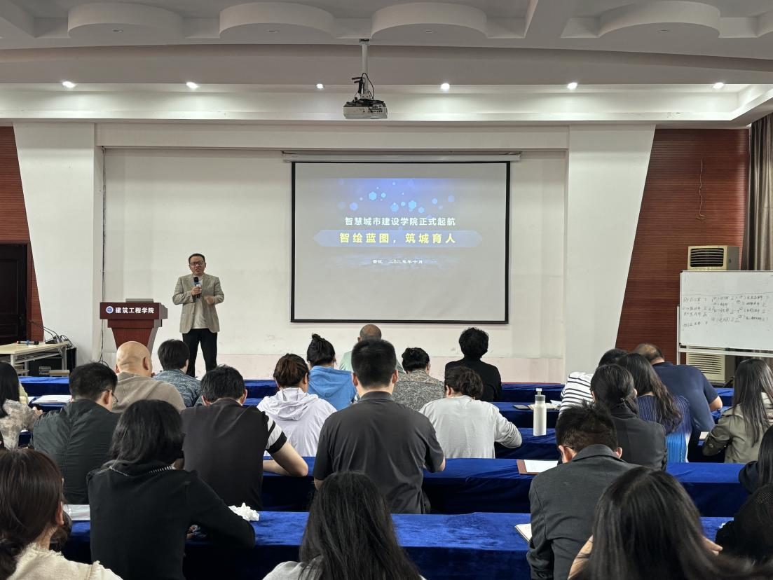 本网讯(图/文 谭涵丹)10月15日智慧城市建设学院在学院办公楼三楼多功能厅召开“智绘蓝图、筑城育人”主题交流会。对学院更名后的发展定位及特色、学科专业布局及规划、新学院建设行动计划等进行全面介绍,旨在统一思想,明确方向,共绘学院发展蓝图。