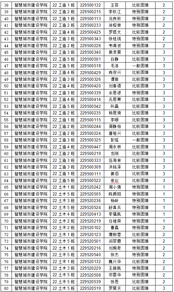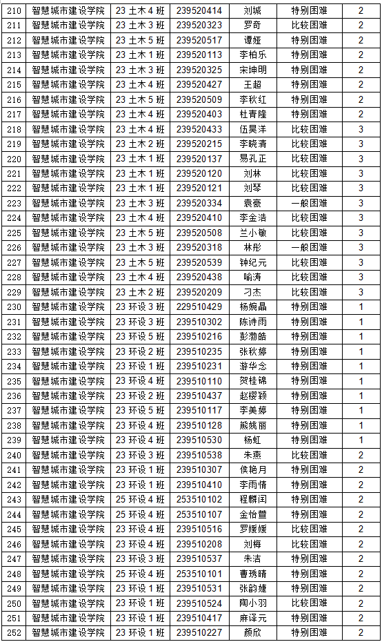 重庆工程学院2025-2026学年家庭经济困难学生国家助学金初审名单公示表