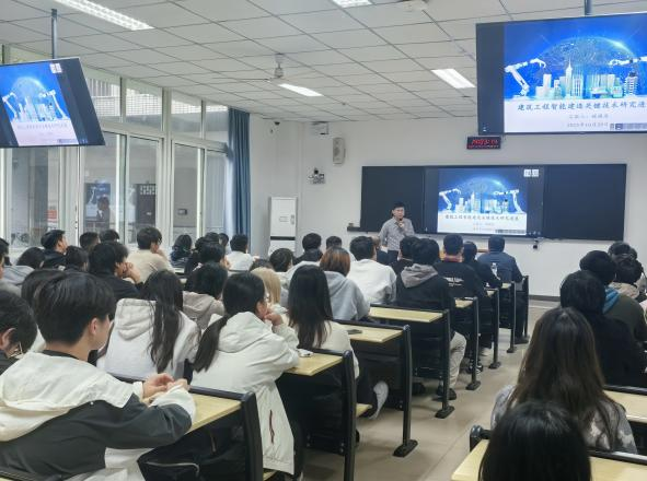 讲座介绍机器人多维度耦合仿真平台、建筑场景自主导航技术,建筑机器人作业技能高效学习技术、施工工艺安全评估与智能优化技术,以及面向施工过程的感知和控制技术等方面的研究进展,最后交流了“建筑机器人技术基本原理”课程建设,为学院的广大师生们带来了一场关于智能建造前沿技术与人才培养的思维盛宴。