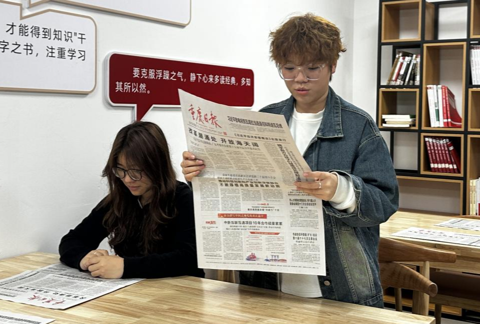 本期活动紧扣《重庆日报》“改革潮涌处,开放海天阔”专题报道及“学习强国”平台“高质量推进国防和军队现代化”主题。同学们深入学习新时代全面深化改革与高水平对外开放的重大部署,结合重庆发展实际,围绕区域协同、科技创新等议题展开热烈讨论;同时通过“学习强国”平台专题学习,深刻领会国防和军队现代化建设的战略意义,进一步增强家国情怀与使命担当。