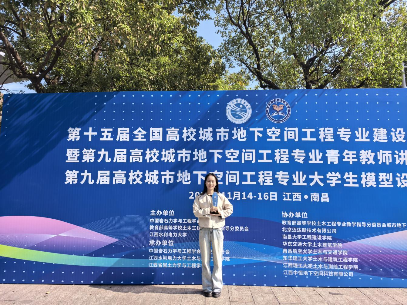 本网讯(文/图 智慧城市建设学院 林俊) 近日,第十五届高校城市地下空间工程专业建设研讨会暨第九届青年教师讲课大赛在江西南昌圆满落幕。我院青年教师袁兰凭借对《隧道与地下工程》课程的深度钻研,以扎实的教学功底、创新的课程设计及生动的课堂呈现,成功斩获讲课大赛一等奖。