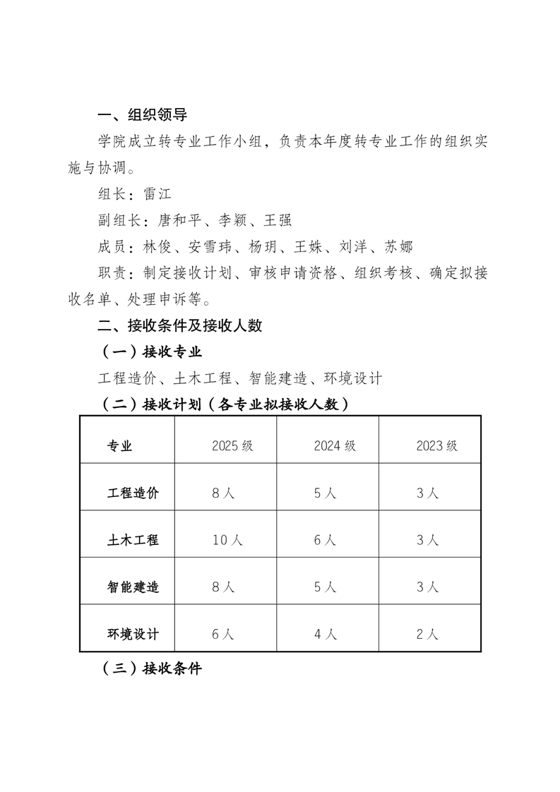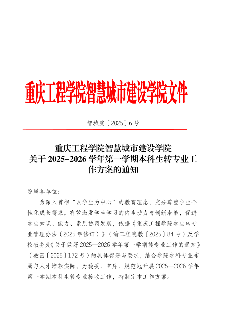 智慧城市建设学院2025—2026学年第一学期本科生转专业工作方案