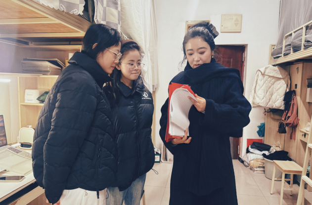 3.学习氛围:部分寝室学习氛围浓厚,可见专业书籍、设计草图及模型材料摆放有序,同学们就课程作业进行交流讨论,展现了良好的专业学习状态。