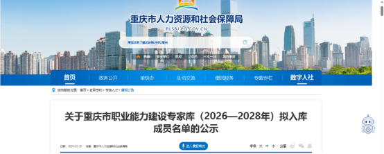 本网讯(文/图 吴俊峰) 日前,重庆市人力资源和社会保障局官网公布了重庆市职业能力建设专家库名单。我院王强副院长成功入选首届重庆市职业能力建设专家库,标志着其在职业能力建设领域的专业能力获得市级权威认可。