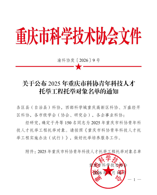 重庆市科协青年科技人才托举工程是助力青年科技人才成长成才的重要平台,为青年科技工作者在创造力黄金时期提供关键支持,是打造区域科技创新人才后备队伍的重要举措。