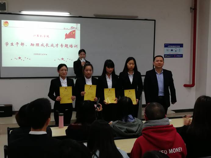 (计算机-覃华伟)为进一步加强学生干部队伍建设,增强我院新一届学生干部、助理的全局意识、服务意识、责任意识、效率意识、创新意识,加强学生的凝聚力、战斗力,提高学生干部队伍整体素质和业务水平,11月14日下午,我院特别举办2018学年度学生干部、助理成长成才专题培训活动,以加强对干部的培养和管理,提高学生干部适应新环境、接受新挑战和自主解决问题的综合能力,从而更好地服务同学与学院。