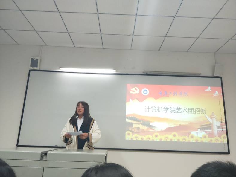 (文/孙兆鑫图/蒋玲莉)为了繁荣校园文化生活,展现当代大学生的个性风采;为发掘我院艺术人才,提高大学生的艺术修养和艺术知识技能,彰显大学生积极向上的精神面貌。计算机学院团委学生会于2018年11月27日晚八点一十在六教111举办了以“生活为名,艺术作主”为主题的艺术团招新活动。