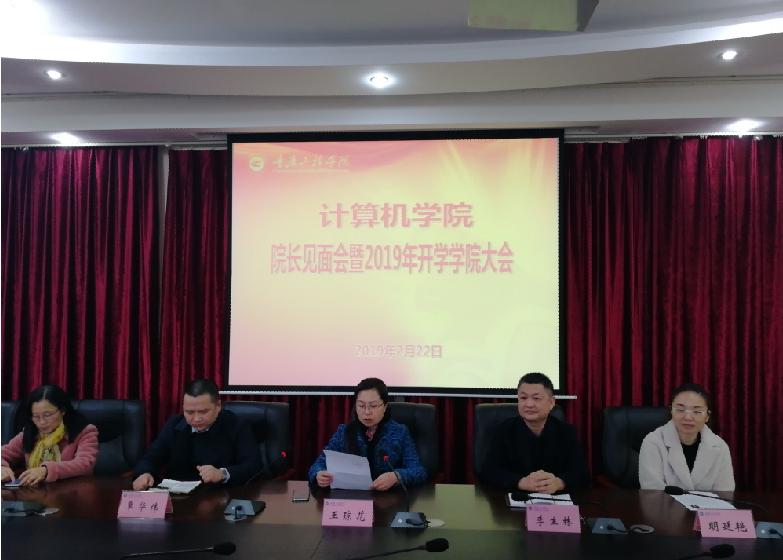 本网讯(文/图 罗桓)2019年2月22日上午11点,计算机学院在行政楼第二会议室召开院长见面会暨2019年开学学院大会。