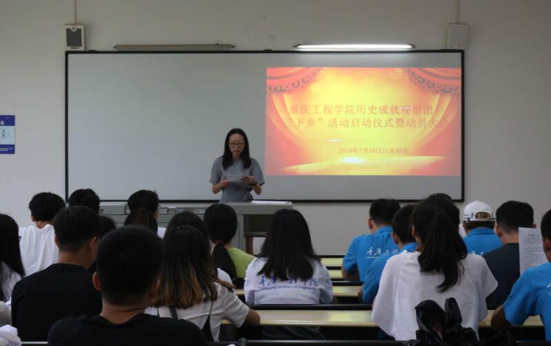 本网讯(文、图/计算机学院团委学生会)2019年7月10日中午11:30,重庆工程学院历史成就观察团“三下乡”启动仪式暨见面大会在第六教学楼105教室顺利举行。计算机学院党总支书记覃华伟,电子信息学院党总支书记刘子菱,计算机学院团委书记郑阳春,电子信息学院带队老师元未霞出席本次大会,计算机学院和电子信息学院历史成就观察团全体成员参加了本次大会。