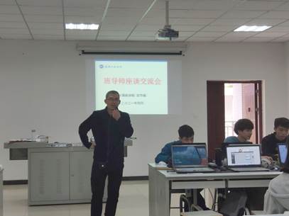 本网讯(文/图 官节福)根据本学期班导师工作计划,为使同学们更深入理解本科专业人才培养目标、毕业条件、学位要求、课程关系以及解决好大三遇到的困难,官节福老师组织18级运维班同学于2021年4月7日12:10在实训楼301教室开展了“方案解读、答疑解惑”的主题班导会。