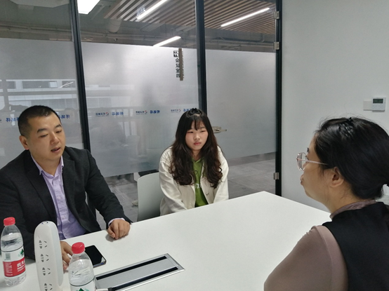 本网讯(文/图 魏克非)2021年10月15日上午,我院就业科魏克非科长与大数据与人工智能学院张庆老师,走访了重庆市渝北区黄山大道博瑞得科技有限公司,看望在这里实习的学生,并与该公司人力资源负责人进行了交流洽谈,邀请该公司参加双选会。