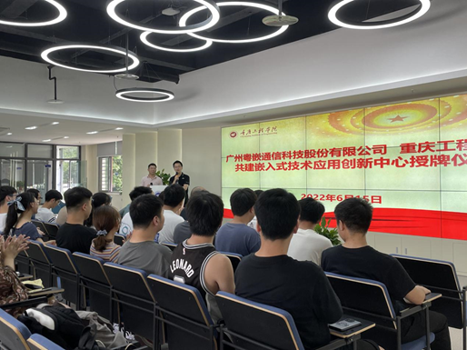 为进一步加强校企科学技术交流及合作,推进产学研协同创新、促进科技成果落地及完善人才培养体系。6月15日,重庆工程学院与广州粤嵌通信科技股份有限公司(下称:粤嵌科技)在重庆工程学院重工创谷会议中心举行“嵌入式技术应用创新中心”授牌仪式。