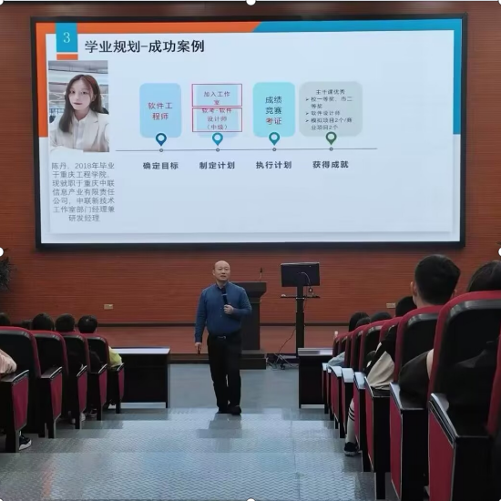 张杰、包致婷老师,以信息安全专业相关知识体系展开话题,为同学们深入讲解了专业发展历程并明确的指出了专业的就业前景与专业特点以及专业课程内容与应该做到的相关准备工作。最后,总结了职业生涯规划,树立职业精神,让同学们提升了对专业的认同感和对就业规划的重视度。