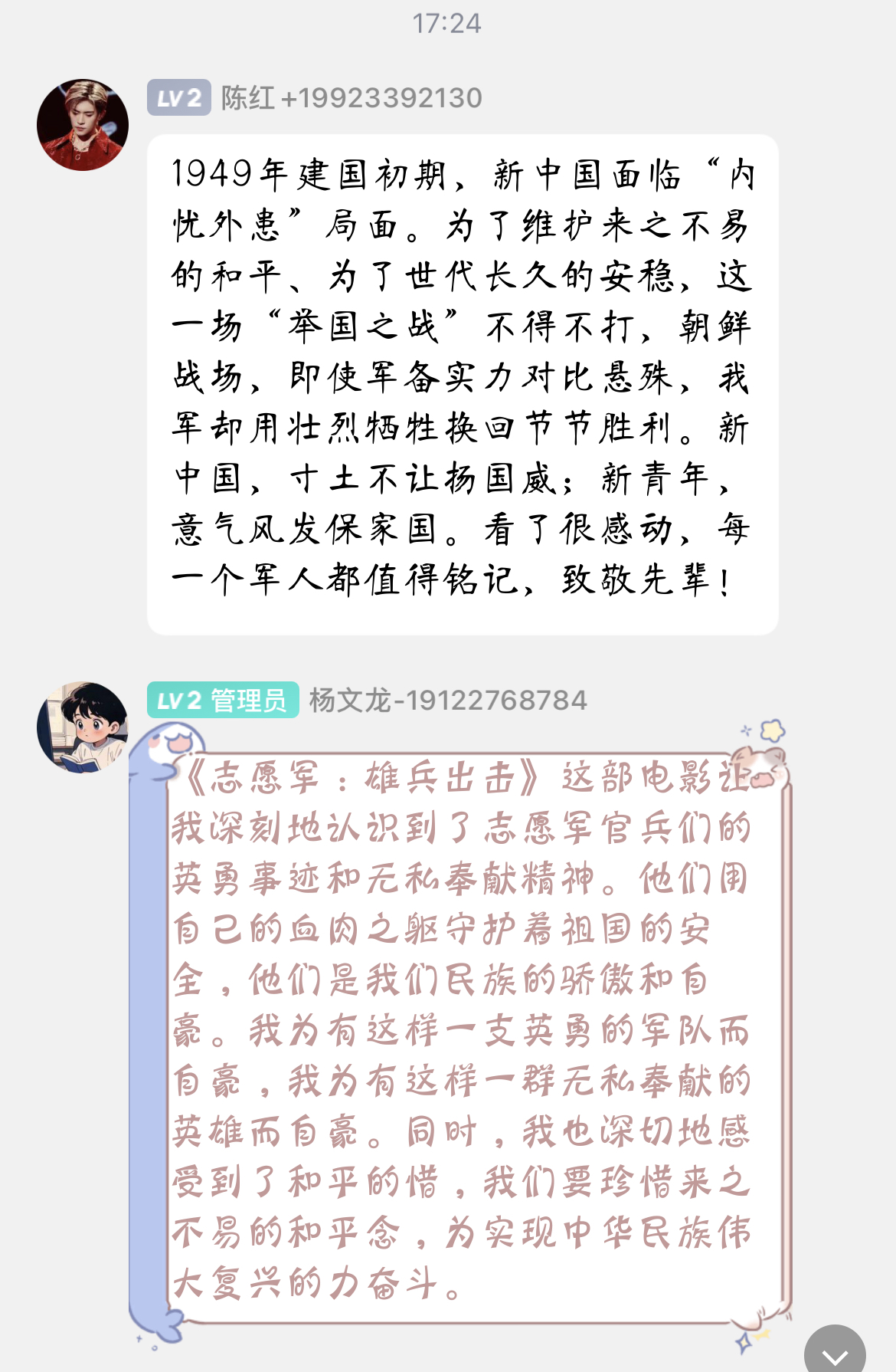 观影结束后,同学们心情久久不能平静,悲壮惨烈的战争,感动至深的情节,鲜活生动的人物,震撼人心的场景,让同学们更加真实地铭记历史、铭记先烈,极大地激发了同学们浓厚的爱国主义情怀,纷纷发表观影感言。
