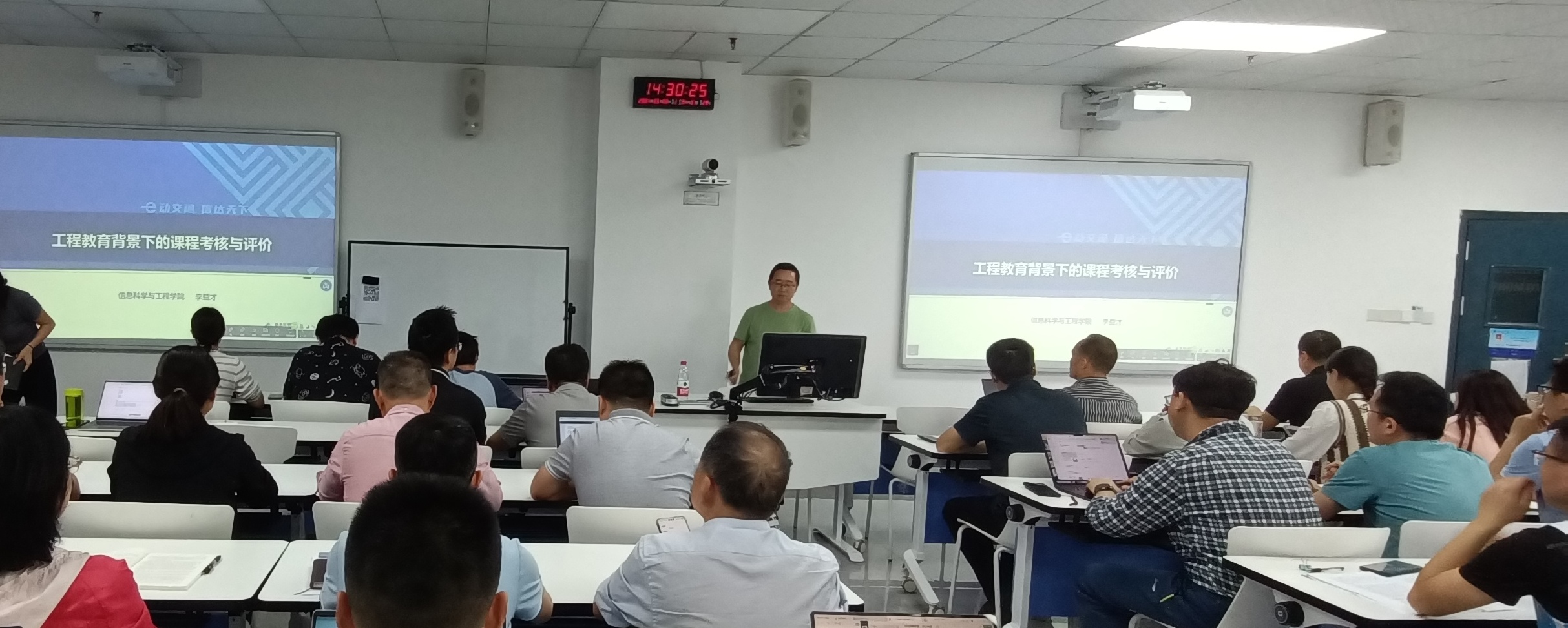 本网讯(文/图 雷仕英)58日下午,计算机与物联网学院诚邀重庆交通大学信息科学与工程学院副院长李益才教授,为本院的全体教师进行课程目标达成度分析及出卷培训。