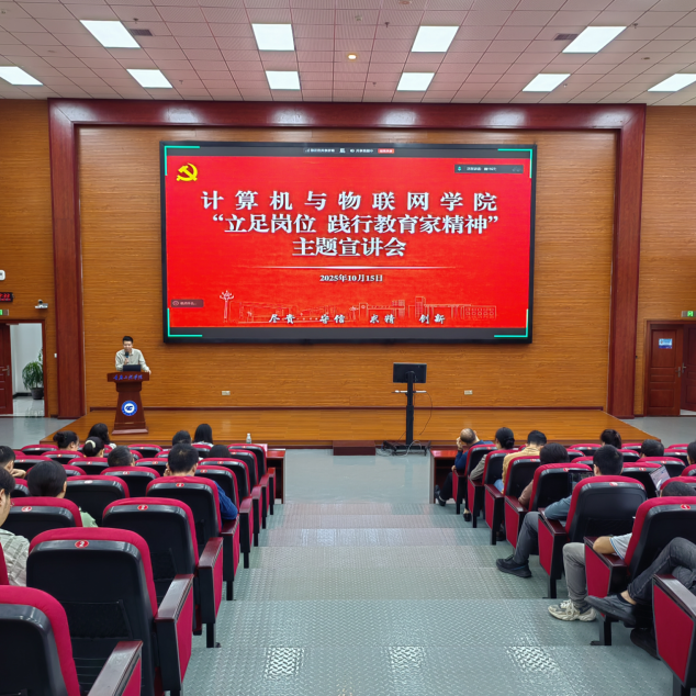 为深入学习贯彻教育家精神核心要义,引导全体教职工将教育初心融入岗位实践,10月15日,计算机与物联网学院组织召开“立足岗位 践行教育家精神”主题宣讲会。会议通过视频学习和主题宣讲的形式,集中观看“教育家精神万里行”专题视频,并邀请秦旗老师主题分享,学院领导班子成员及全体教职工参会,共同探寻教育家精神的实践路径。
