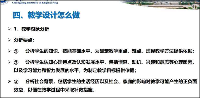 刘奇韬副教授从教学设计的基本概念、常见学生问题、主要内容、核心问题及实施方法五个方面展开系统讲解。他强调,科学的教学设计有助于明确教学目标,优化资源配置,有效激发学生学习兴趣,提升教学效果。培训重点阐释了教学设计需解决的三个关键问题:明确“教给谁”、“教什么”及“怎样教”。刘副教授指出,新教师应立足教学目标,结合学生认知特点,精准把握教学重难点,引导学生目标导向学习。