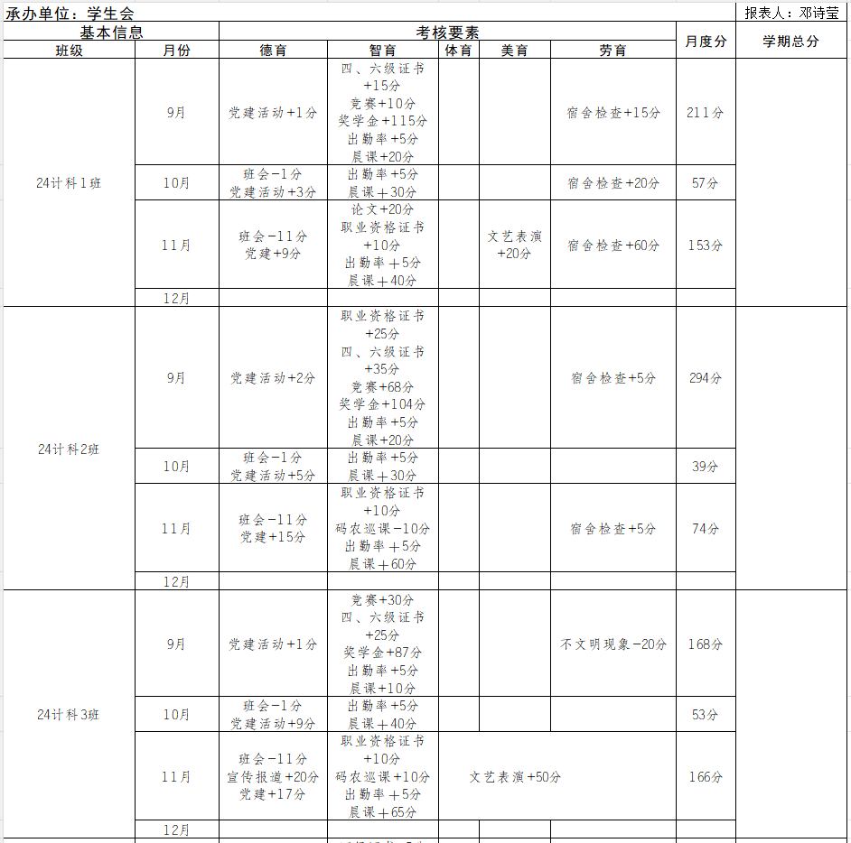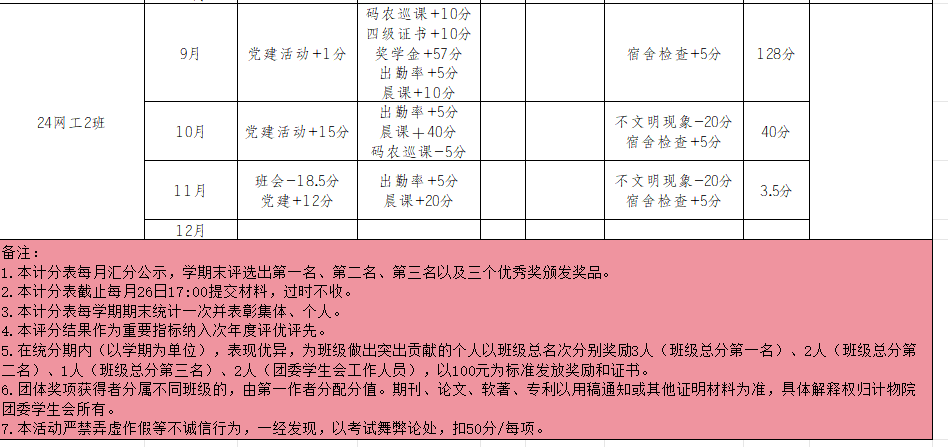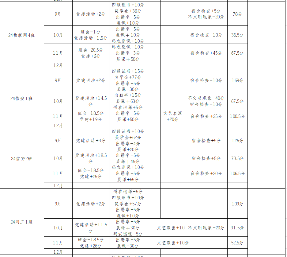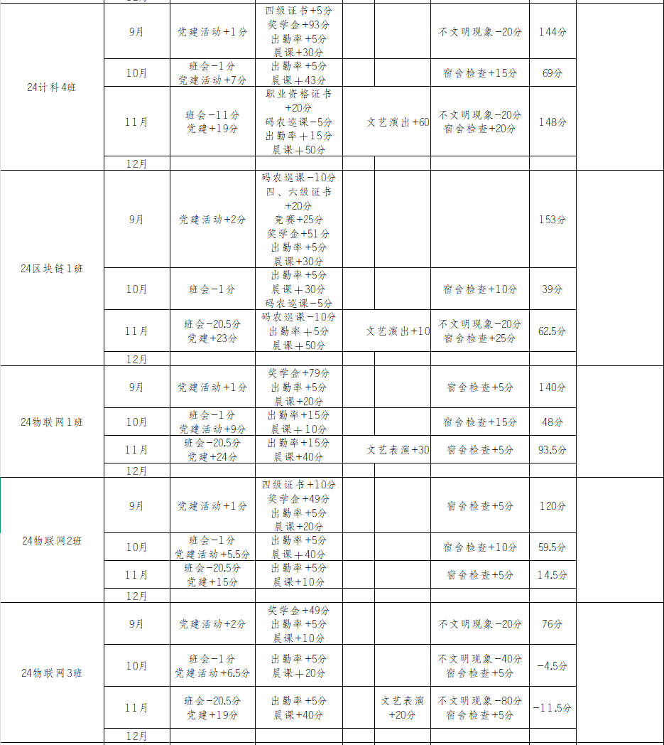 计算机与物联网学院码农班级对抗赛计分表(11月)