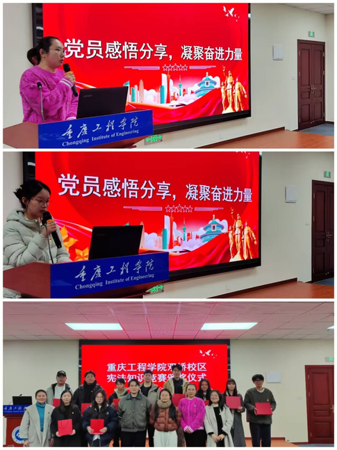 为强化党员身份意识与责任担当,坚定理想信念,2025年12月18日重庆工程学院双桥校区计算机与物联网学院组织开展了“宪法铸魂・初心践行”主题党日活动,双桥校区各学院学生支部100余名师生党员以“线上+线下”相结合的形式参加。