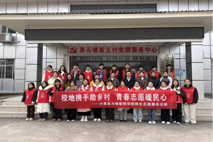 本网讯(图/文 魏登雪)在春节即将到来之际,为持续深化校地党建共建,以专业力量赋能乡村振兴,1月14日,界石镇新玉村村委会联合计算机与物联网学院党总支、工会、团委共同举办“专业赋能基层、温情慰问暖新春”主题教育实践活动。新玉村村委书记蒋丽,计算机与物联网学院党总支书记黄涛,学院“码农先锋”教师志愿服务队成员代表齐聚一堂,共话合作、共送温情。