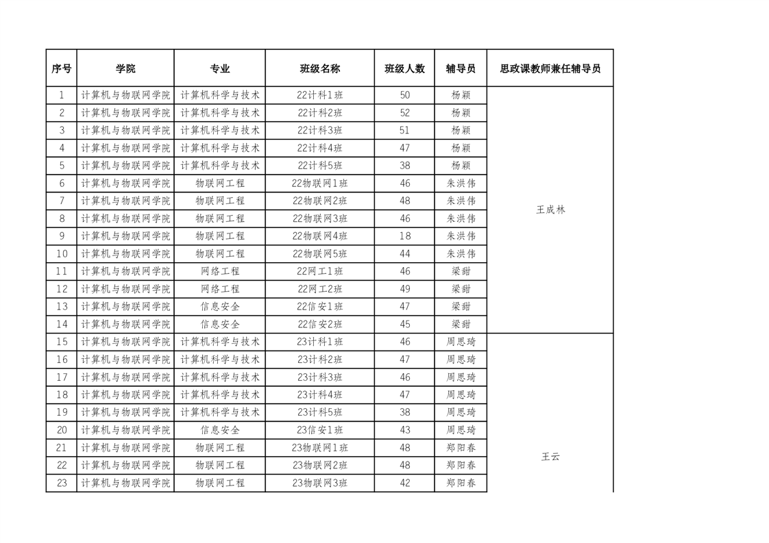 重庆工程学院2025-2026学年度思政课教师兼任辅导员一览表