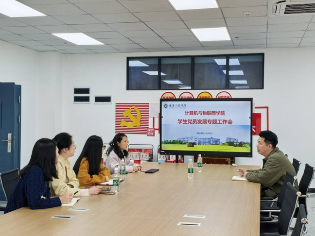 3 月 10 日,计算机与物联网学院在7806 会议室组织召开学生党员发展专题工作会。学院党总支书记、专职组织员、各学生党支部书记参加会议。