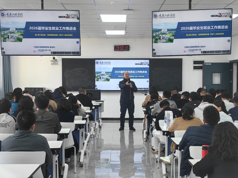 本网讯(图/文 魏克非)2026年3月11日,计算机与物联网学院在71106组织召开2026届就业工作推进会,主题为“凝心聚力再出发、抢抓春招黄金期 打赢千人就业攻坚战”。学院院长李发陵、党总支书记黄涛及全院教师参加会议,会议由就业科科长魏克非主持。