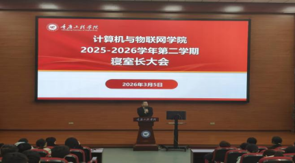 本网讯(图/文 李定菊)为进一步加强寝室文明建设,明确寝室长工作职责,营造安全、文明、和谐的寝室氛围。2026年3月5日在7807报告厅计算机与物联网学院寝室长大会。学院党总支书记黄涛、学生科科长郝恬、全体辅导员、全体寝室长共同参会。