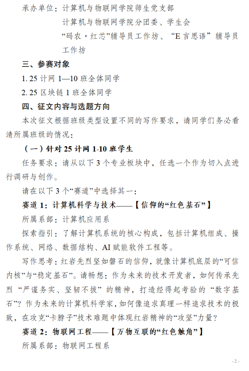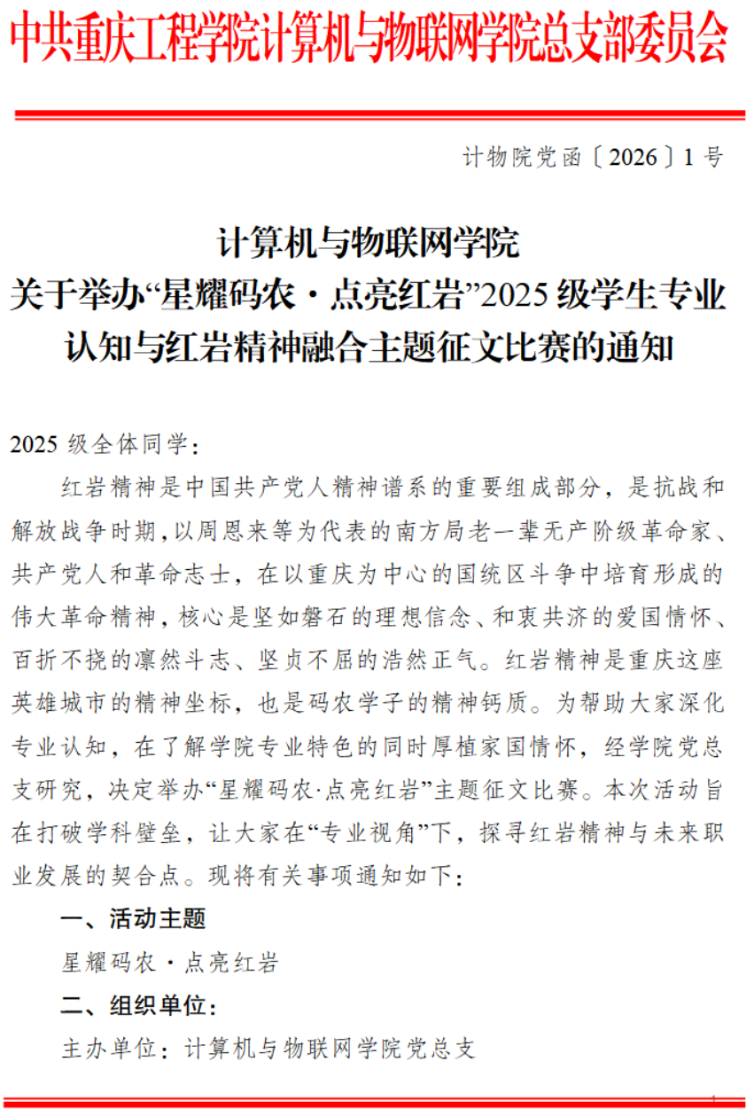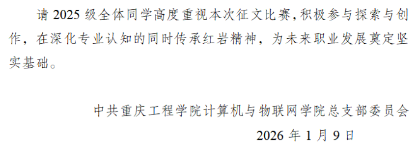 我院关于举办“星耀码农·点亮红岩”2025 级学生专业 认知与红岩精神融合主题征文比赛的通知