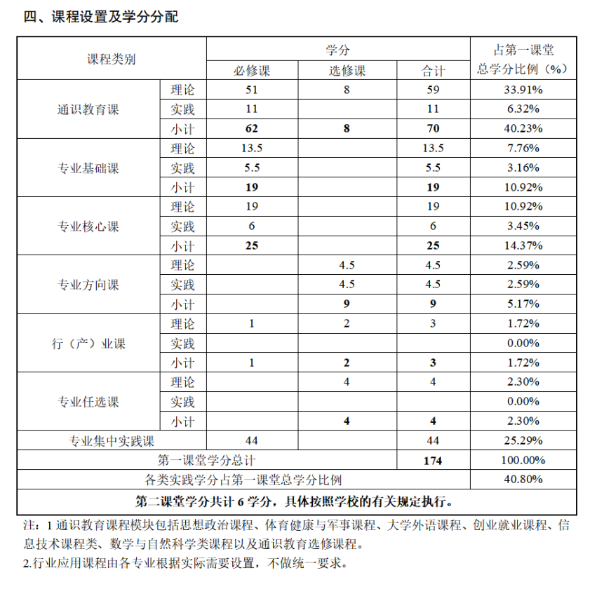 本专业最低毕业学分:第一课堂174学分,第二课堂6学分。