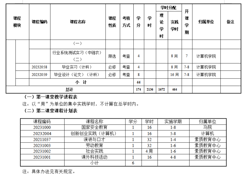 项目综合实训(前端)、项目综合实训(后端)、项目综合实训(测试)、毕业实习(计科)、毕业设计(论文)(计科)