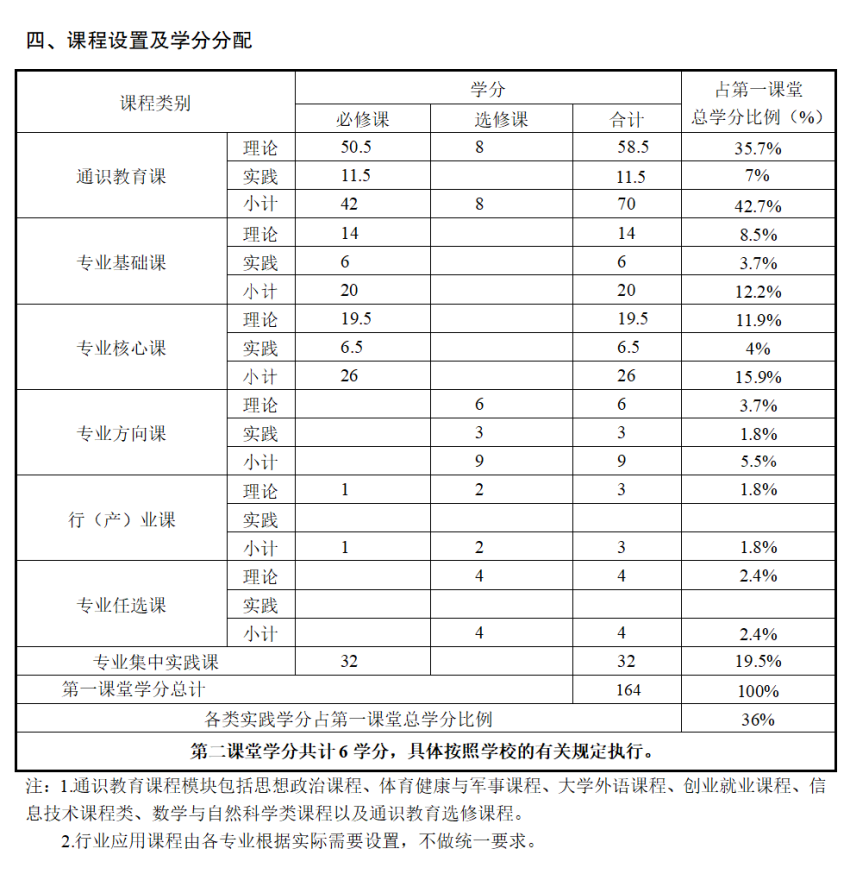 本专业最低毕业学分:第一课堂164学分,第二课堂6学分。