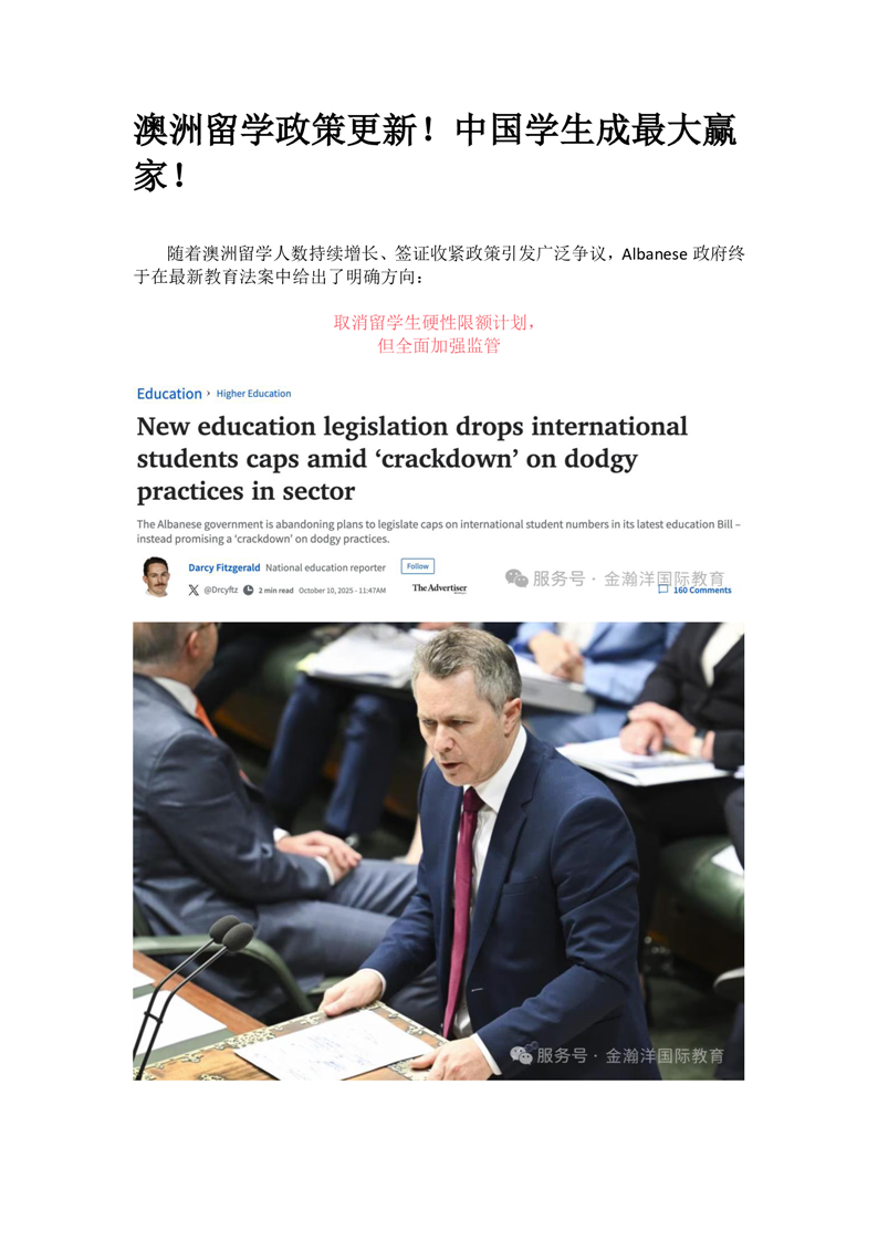 澳洲留学政策更新!中国学生成最大赢家!