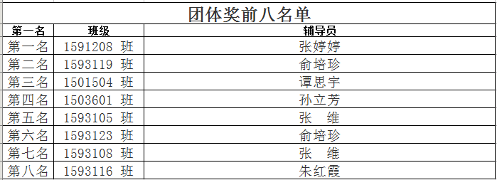 团体奖前八名