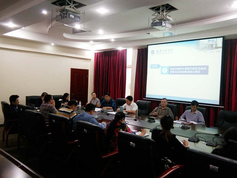 会上,程昌华副校长通报了巴南区实施创新驱动发展战略调研会情况。科技处处长李静传达了重庆市政府创新驱动发展相关政策文件及市教委有关会议精神。会议对近期即将在我校举办的两个双创活动筹备,《重庆工程学院“十三五” 科技发展专项规划》和《重庆工程学院科研基地建设管理办法》进行了讨论。