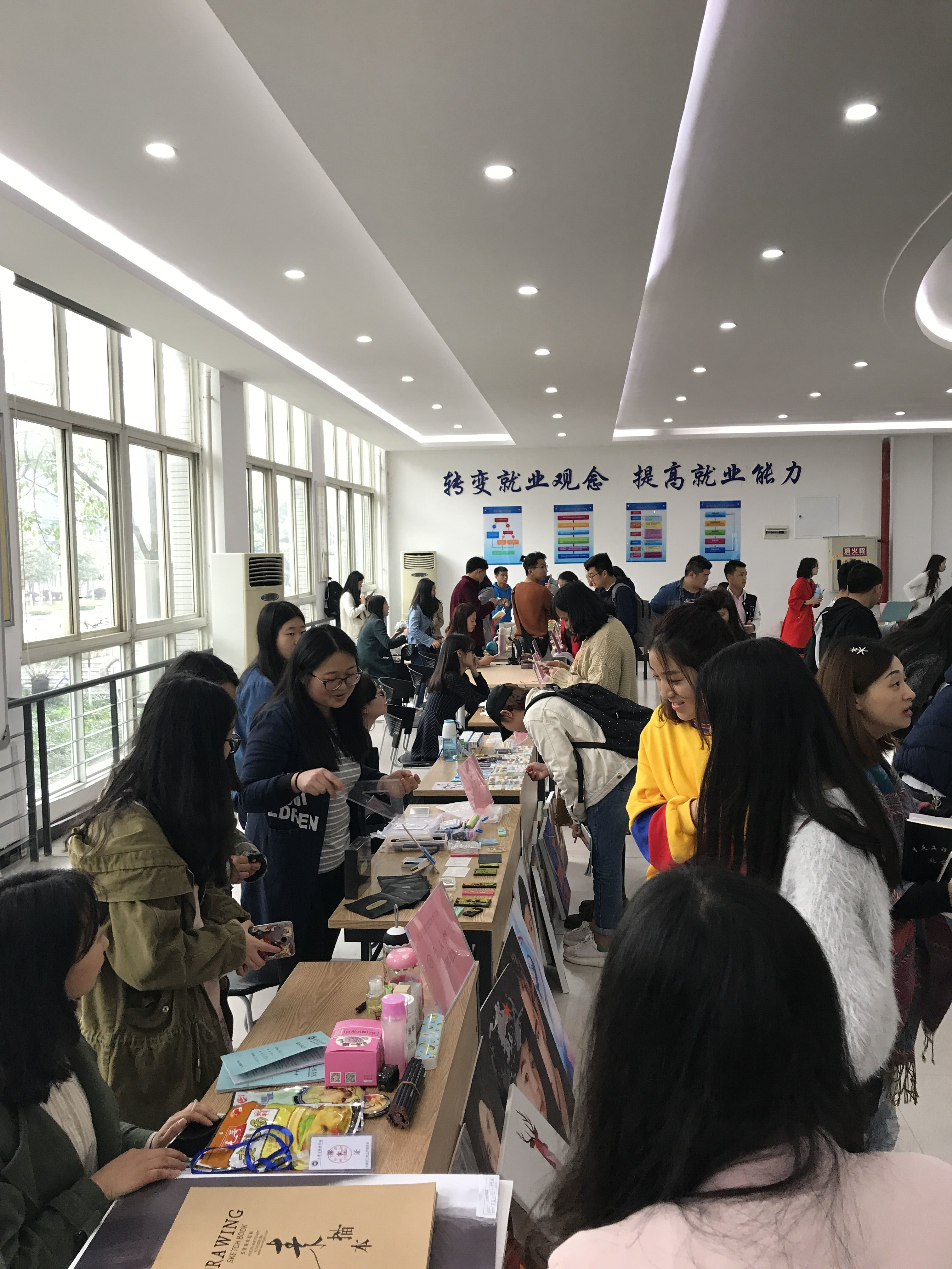 本网讯(学生处 李婷)3月29日下午14:00,我校首期校园跳蚤市场在大学生服务中心一楼大厅火爆开市。来自全校各个不同专业的30余位学生“商家”入驻服务大厅,自己做主当起了“老板”;来自全校的千余名老师和学生“顾客”参与交换、选购“废旧”书籍、玩具、物品等交易,感受了互利互惠交易的特殊魅力。学校党委书记张业平也亲临活动现场,与前来入驻的学生“商家”进行了亲切交谈,了解同学们的真实需求。