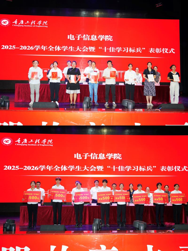 本网讯(文/电子信息学院 马寒梅 图/大学生记者团)为激励电子信息学院全体师生在新学年以更饱满的热情和昂扬的斗志迎接新挑战、明确新目标,10月10 日下午 ,电子信息学院在学术报告厅举行2025-2026学年全体师生大会暨“十佳学习标兵”表彰仪式。学院全体领导、教职工及学生参加大会,会议由学院团委副书记孙美晨主持。