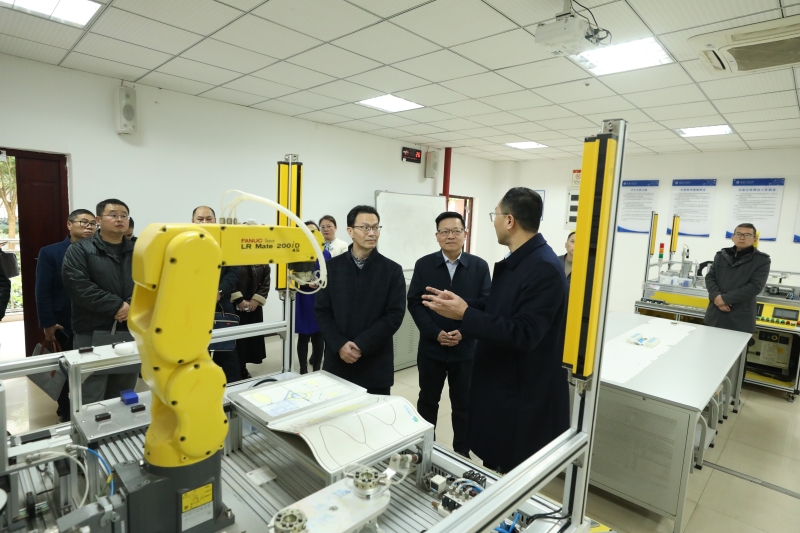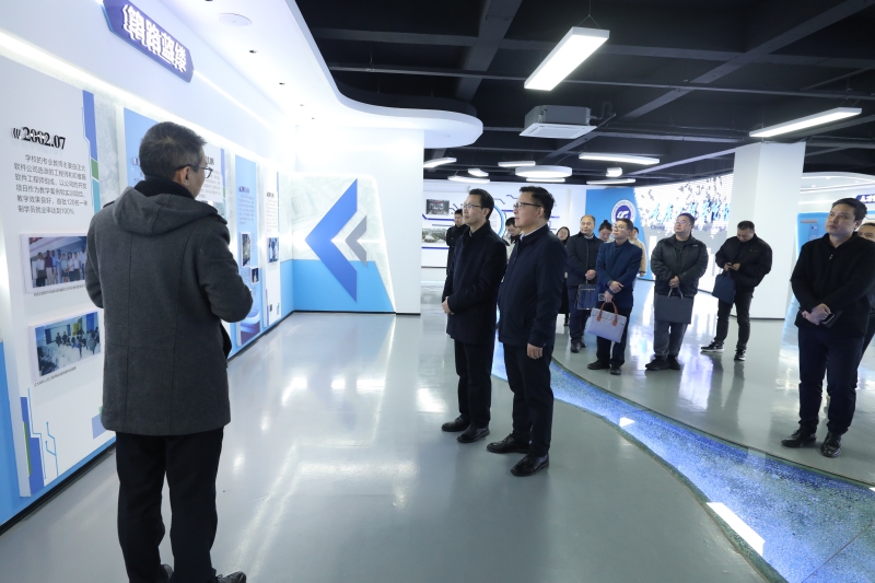 调研伊始,陈长虹陪同万书辉一行先后参观校史馆、智慧校园管理中心、智能制造学院实验室,详细介绍我校办学沿革、转型发展历程及数字化校园建设成果,直观展现学校在应用型人才培养、智能化教学管理等方面的特色实践,让来访嘉宾全面了解我校发展全貌。