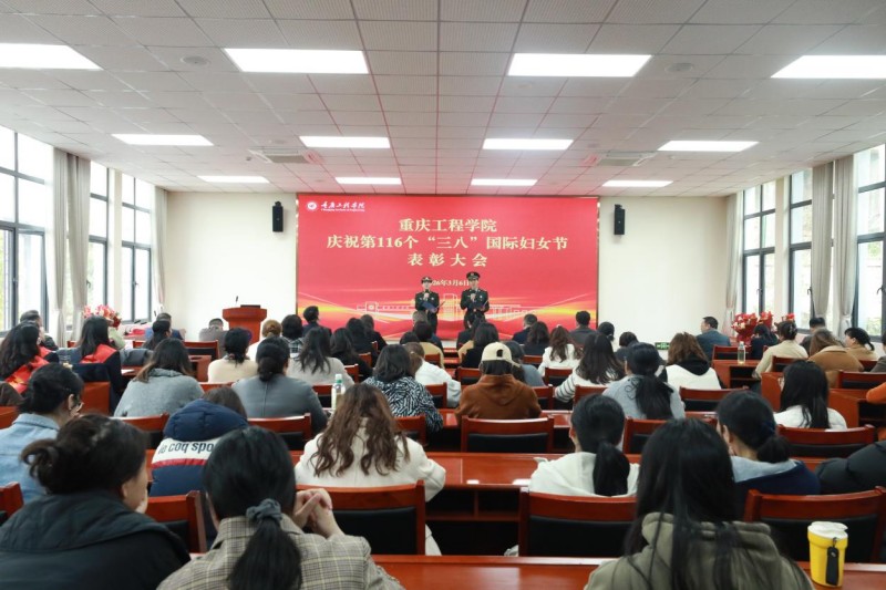 本网讯(文/党委宣传部、校工会 图/大学生记者团 向泽浩)春风送暖绽芳华,巾帼建功新时代。3月6日下午,重庆工程学院庆祝第116 个“三八”国际妇女节表彰大会在南泉校区行政楼第四会议室举行。学校党委书记陈长虹,副校长、工会主席王建东出席大会,各二级学院党总支书记、分工会主席及女教职工代表参会。大会由工会副主席熊力主持。