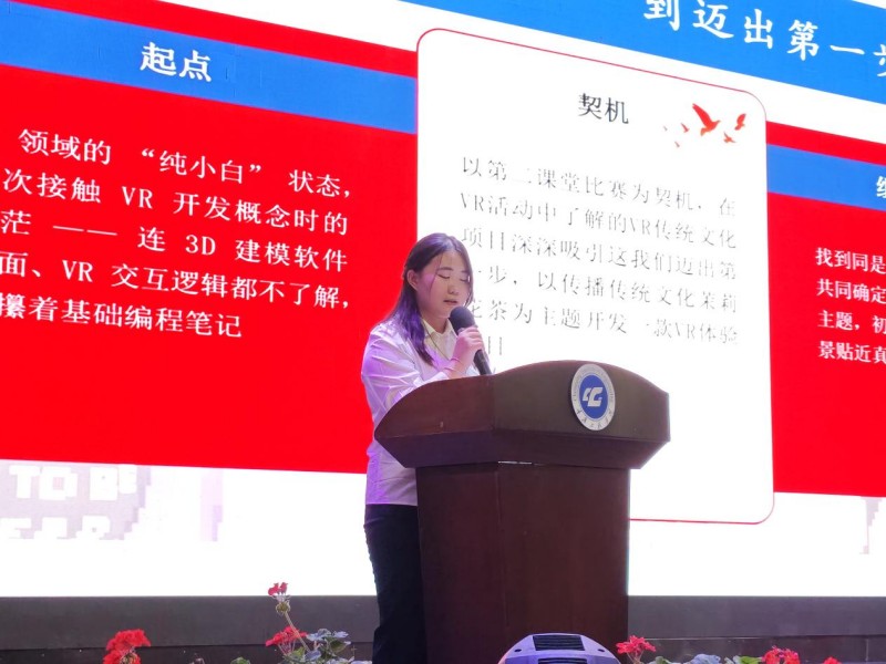 刚接触虚拟现实技术专业时,何姗珊和大多数新生一样,面对3D建模、VR交互逻辑、Unity引擎、C#编程等专业内容,也曾感到陌生和迷茫。但她没有退缩,反而认准一个道理:工科专业,拼的就是动手能力;AI与数字领域,靠的就是真刀真枪的实践。