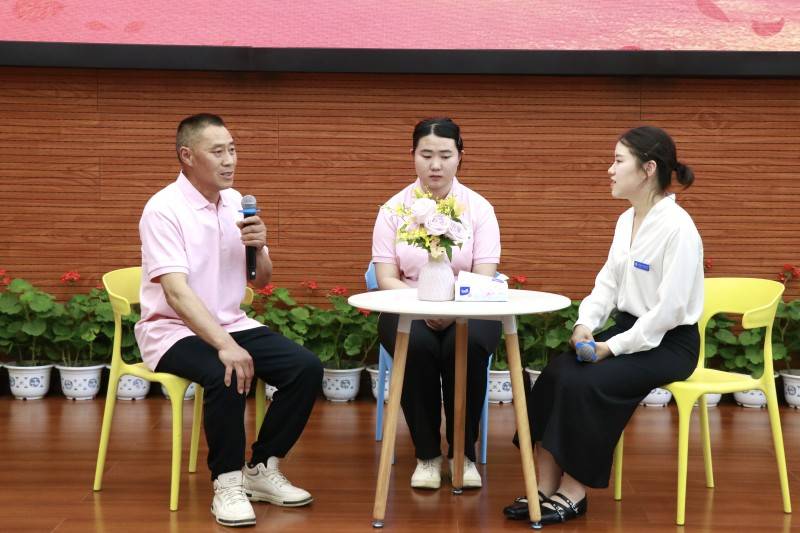 微访谈环节,优秀学生代表郑梦林与父亲、辅导员现场对话,分享成长点滴;数字孪生产业学院辅导员李晨燕讲述何姗珊逆袭成长之路,何姗珊父亲的真情流露让全场动容。家校同心、师生同行,生动诠释协同育人的温暖力量。