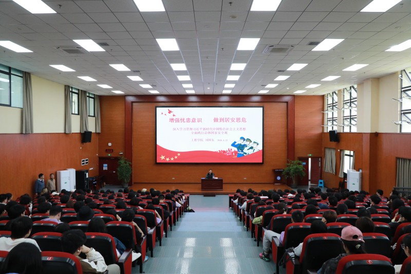 本网讯(文/保卫处 刘浩然 图/大学生记者团 江勇志)为进一步增强广大师生的国家安全意识与风险防范能力,筑牢校园安全思想防线,4月22日下午,学校保卫处邀请重庆市巴南区民警刘国东走进校园,开展了一场国家安全知识专题讲座。全校300余名师生代表齐聚现场,共同接受了一次深刻的国家安全思想洗礼。