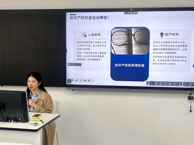 本次讲座内容聚焦知识产权全链条,围绕申报、登记、保护、维权及成果转化等关键环节展开。黄璐结合学生团队开发、在校创作等情况,清晰阐释了各类知识产权的归属判定标准,并着重强调了留存书面协议、聊天记录等证据的法律意义,为防范潜在权属纠纷提供了切实指导。皮历则从实务操作出发,系统梳理了专利权、软件著作权等知识产权申报的具体流程与规范,并针对当前审查新规下的材料准备要点与策略调整提供了专业建议,助力师生高效完成申报。